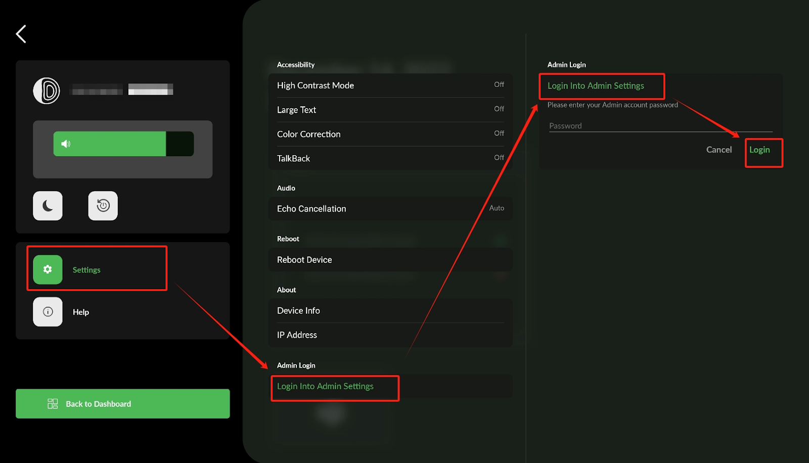 - Click Settings, navigate to Login to Admin settings, click Login directly, there is no password as default.